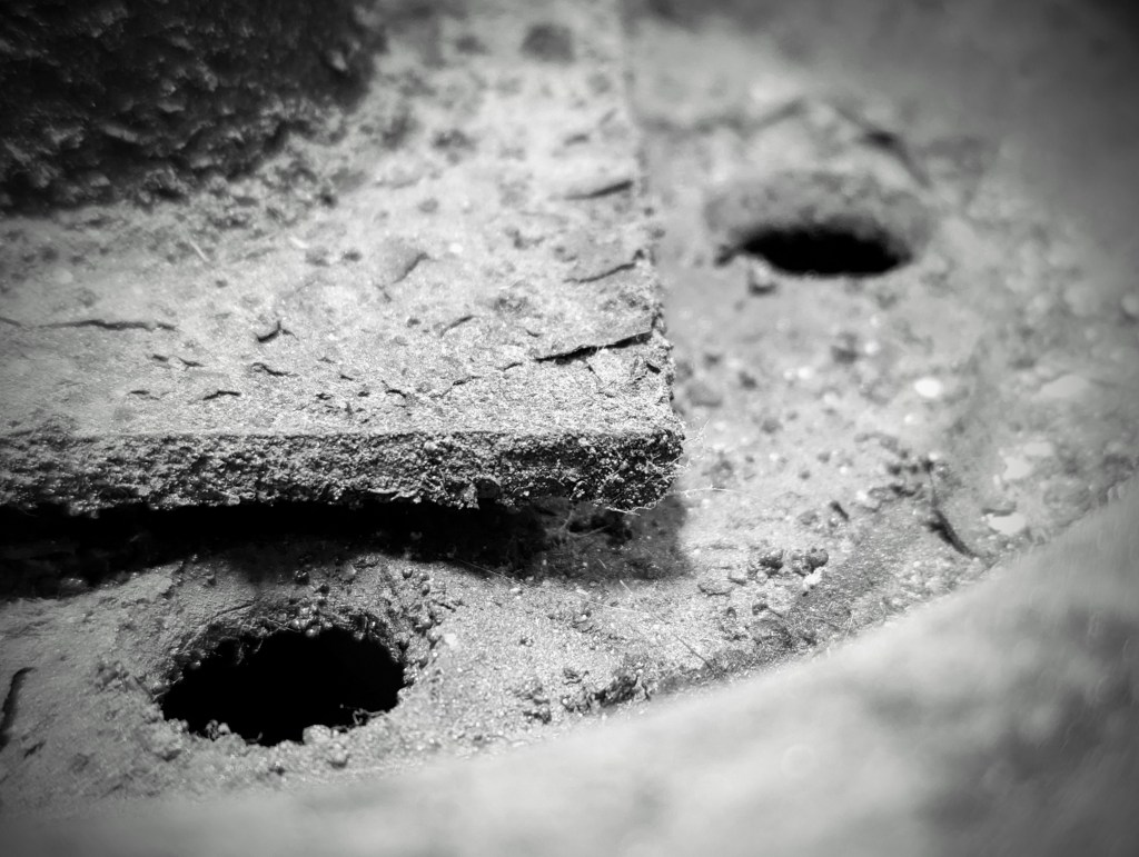 Metal B&W Taken by me 2/23 March 5, 2023 by Ash Ochoa Poetry Categories: My PicturesTags: Black and white, Macro, Metal, Photography, Texture 6 Comments